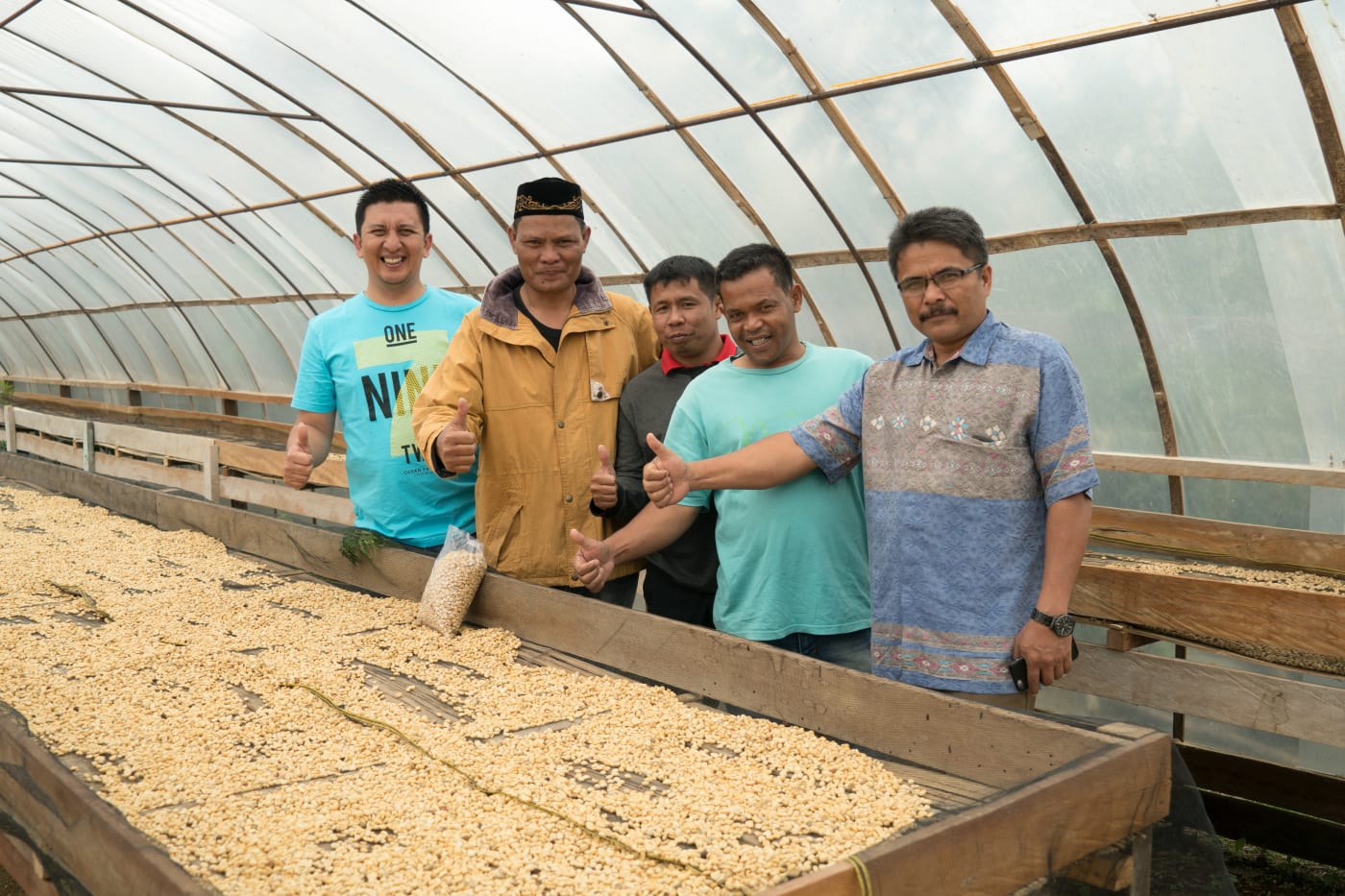 In Sumatra, coffee farmers will typically harvest their coffee cherries and depulp them by hand at their farm or home. The coffee then dries for a very short time and is brought either to a coffee marketplace or to a ‘collector’ or collection point, where the beans are purchased at anywhere from 30–50% moisture, with their mucilage still partially intact. The coffee is then combined and hulled (has its parchment removed) while it is still in this high-moisture state. The coffee is then dried to the more commonly globally accepted 11–13% moisture to prepare for export.